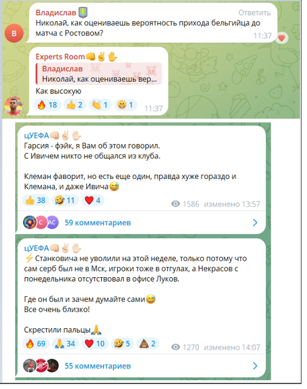 ⚽ Руководство Спартака за Ивича — Кахигао за Гарсию: на днях клуб обратился к представителям Владана с предложением возглавить красно-белых после отставки Станковича, которую ожидают на следующей неделе (зависит от того, когда сумеют договориться с новым тренером).