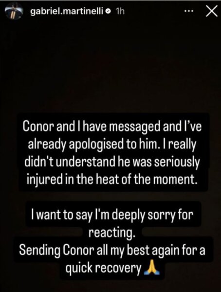 У меня сложилось впечатление, что Мартинелли не специально мячом бросил и даже после этого подошел извиниться. А потом Брэдли, лежащий на линии, подвинулся в сторону поля, и Мартинелли среагировал на это как на затяжку времени - мог же за поле сдвинуться. И мне кажется, Габриель не оценил тяжесть травмы. При всем этом в любом случае поступил некрасиво.