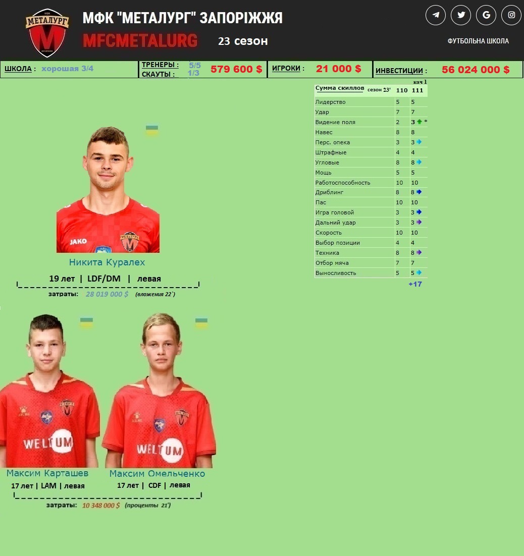 Выбор школьной стратегии - естественно вложения, в школе более 5ти игроков в этом сезоне не держим.. поэтому скаутские находки в лице Нестеренко и Лешенкова выписаны в основной состав.. те ещё буратины, блть..